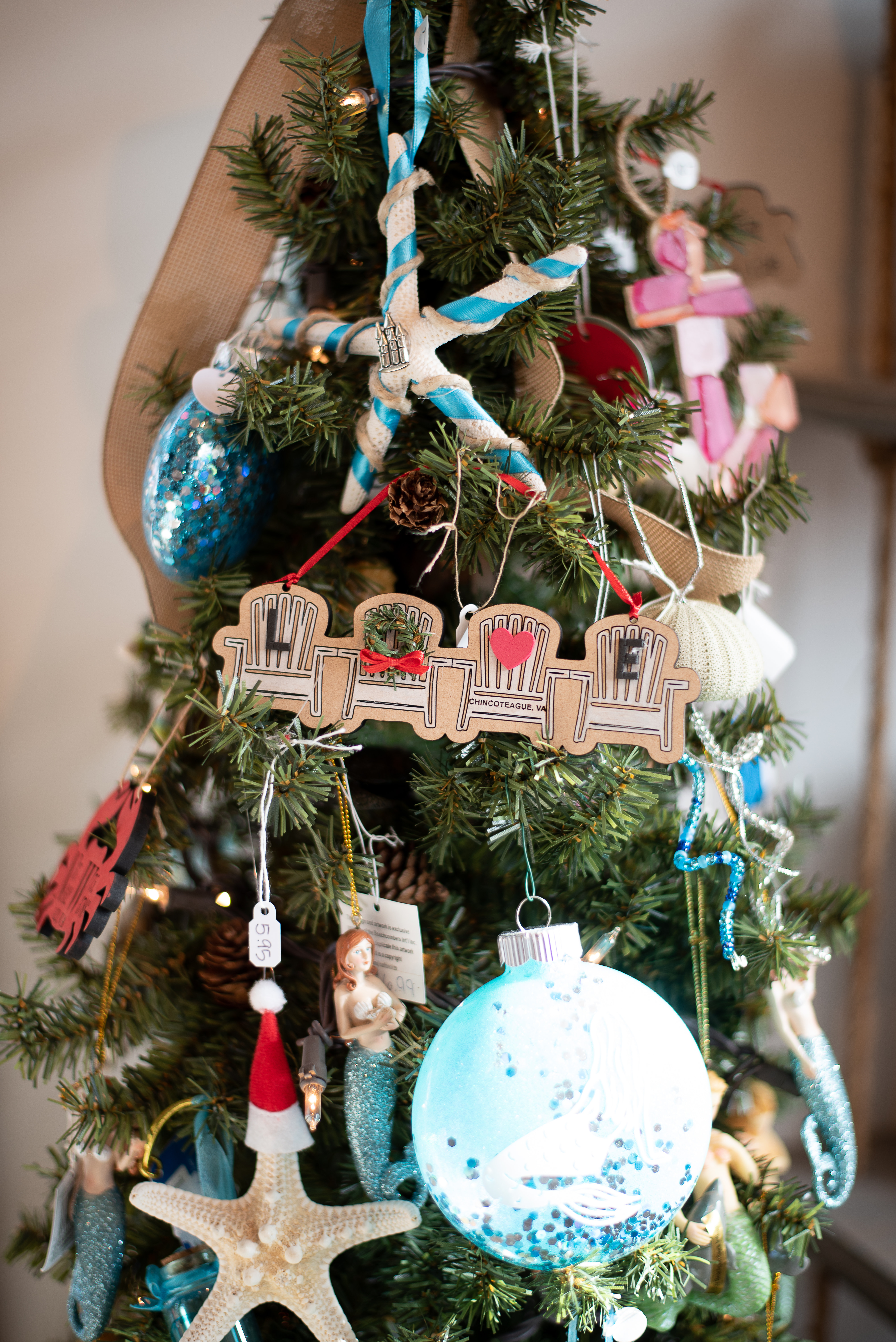 The “Mini Love Chairs” have been a top seller for Skylar since she started making them in 2015. Her husband, Geno, would like to take full credit of this idea (I’ll let her dispute that). She has since sold over 400 sets of chairs. 400 families touched by her creation. 400 families have the chairs that I am sure tell them a story of a time when they visited Chincoteague, Va. She didn’t stop at these mini sets of chairs though, she had another idea. The LOVE chairs are now a Christmas ornament for your Christmas tree and boy have they taken off! You can also get the wreath attachment so you remain festive with your love chairs during the holiday season as well.