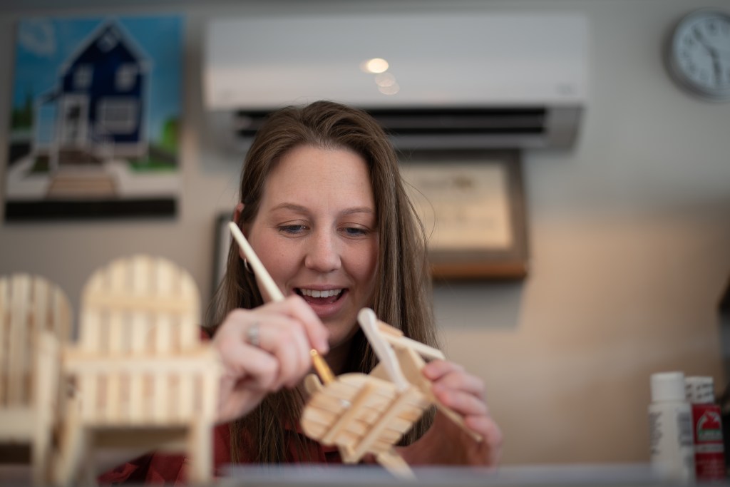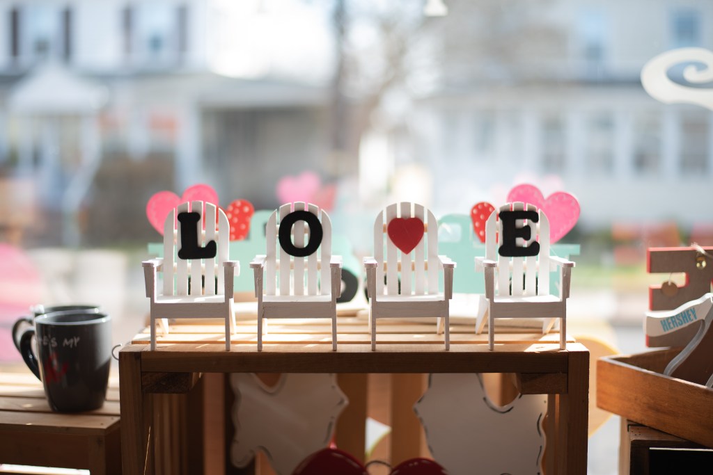 Aside from opening her shop, which would be her biggest accomplishment, Skylar has also stolen the United States with her replica love chairs. When you visit Chincoteague, VA be sure to head to Robert Reed Park and get your picture taken in, in front of, or on top of the LOVE chairs. These chairs have become a staple in this little town. They have seen proposals, pregnancy announcements, family photographs, weddings and so much more. When you are done getting your picture taken stop into Sandy Sky’s to get your own personal mini chair set!